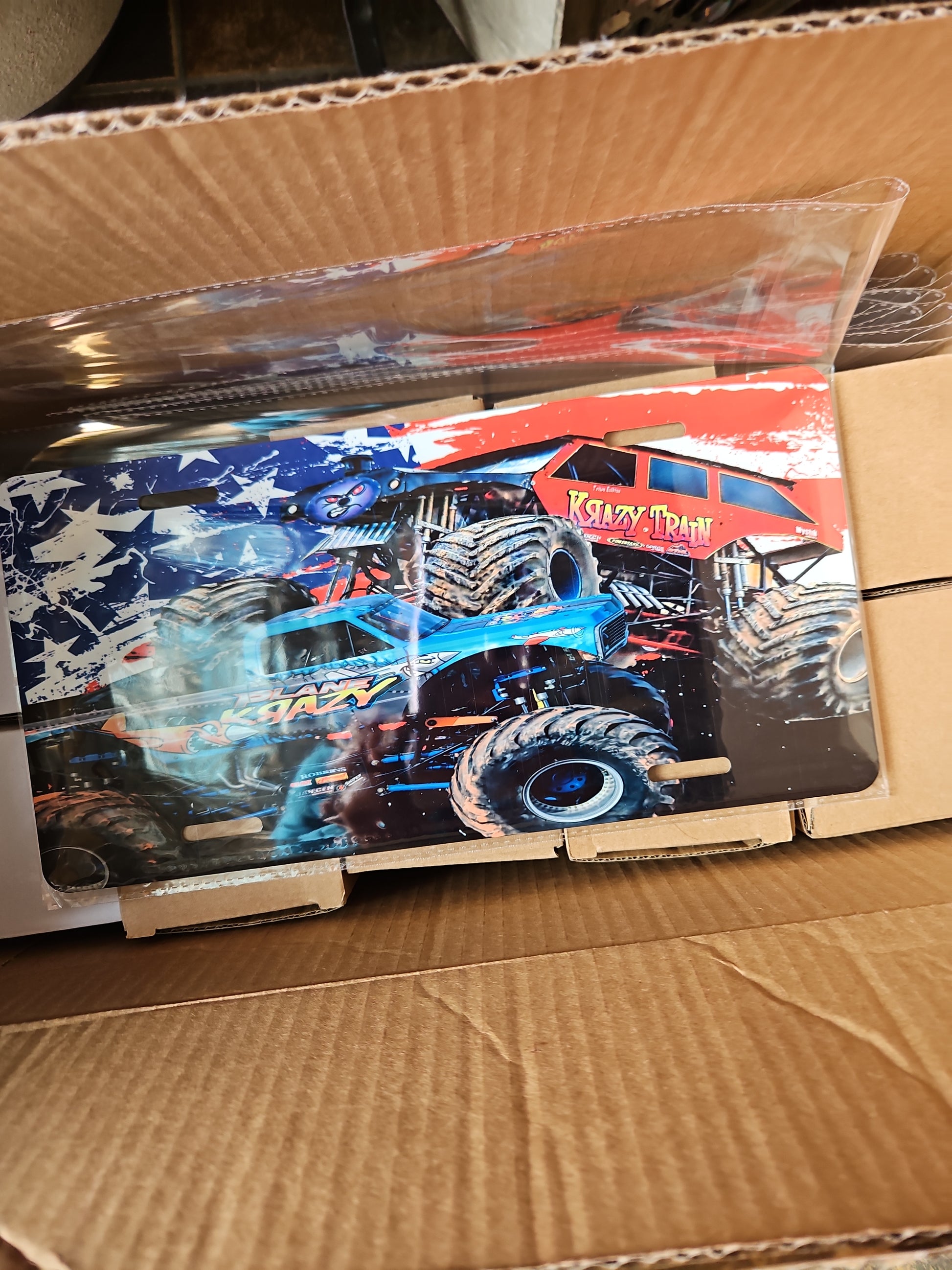 Heavy duty Licence Pate with image of Krazy Train & Plane Krazy Monster Trucks.